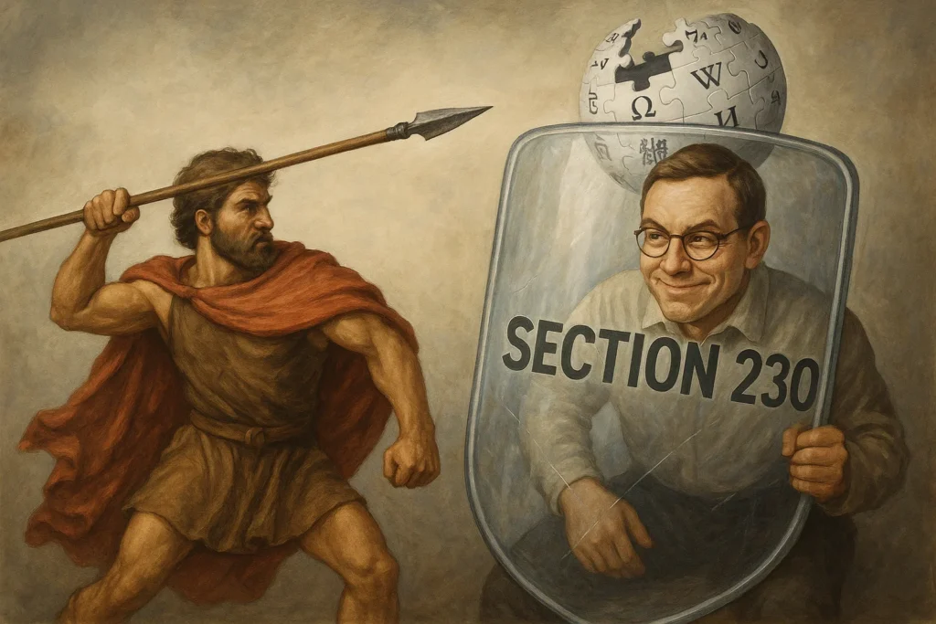 - The victim has no one to sue. They can’t sue the anonymous users, and the Wikimedia Foundation (WMF) hides behind Section 230 immunity.