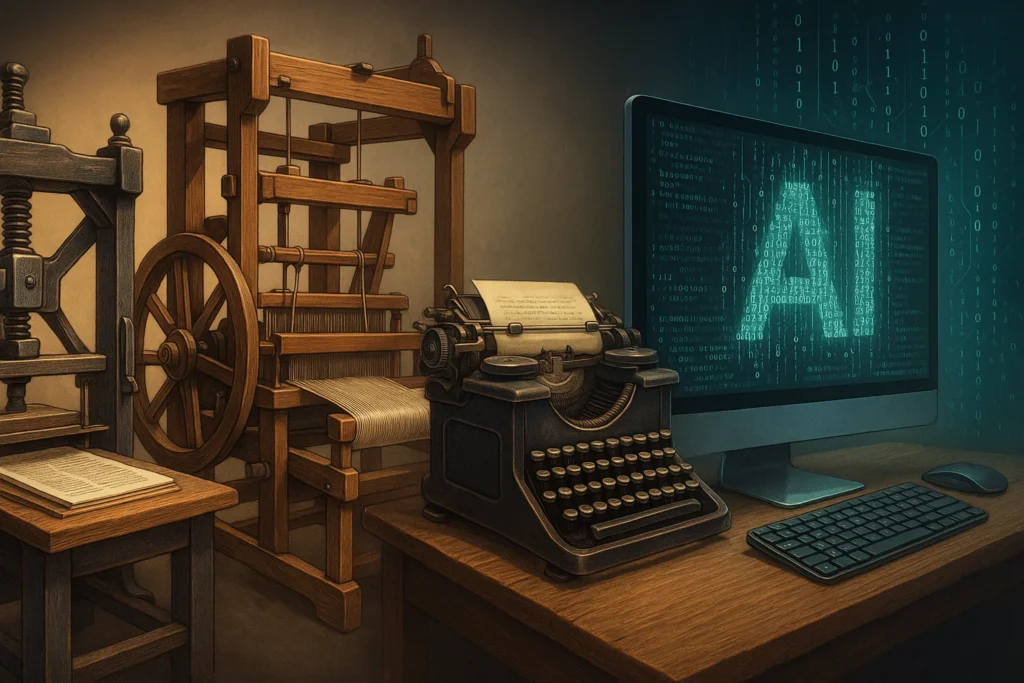 Tool shaming is not new. It is the latest incarnation of a timeless panic. Socrates feared the written word would “create forgetfulness in the learners’ souls.” The Church feared the printing press would unleash heresy. The Luddites smashed looms. Critics dismissed photography, digital art, and synthesizers as “not real art.” In every case, the alarmists attacked the tool to avoid engaging with the output or the user. The current moral panic over AI is just the 21st-century version of this tired playbook—the reaction of guilds feeling the unsettling winds of democratization.